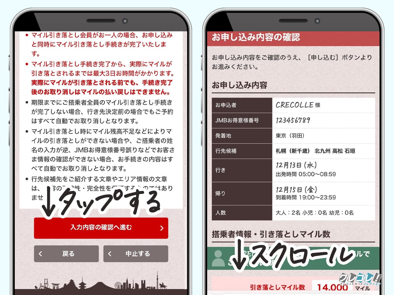 引き落としされる合計マイル数が表示されます。