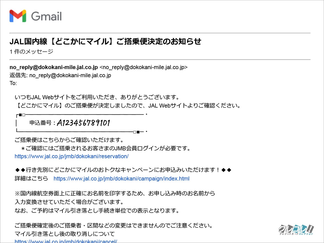 乗る飛行機が決まったら、こんなメールが届きます。