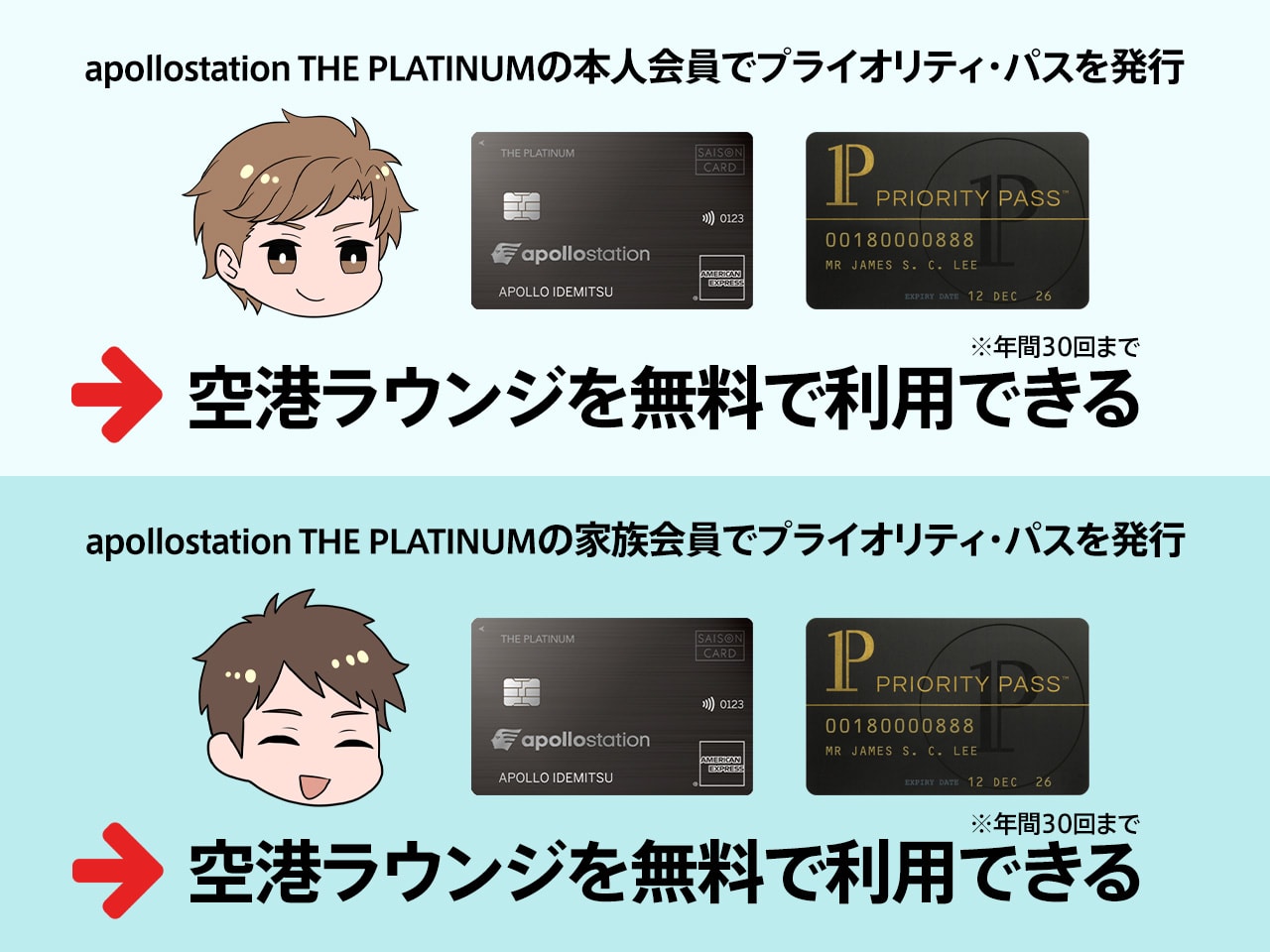 apollostation THE PLATINUMは家族カードもプライオリティ・パスに登録できるのがメリットです。