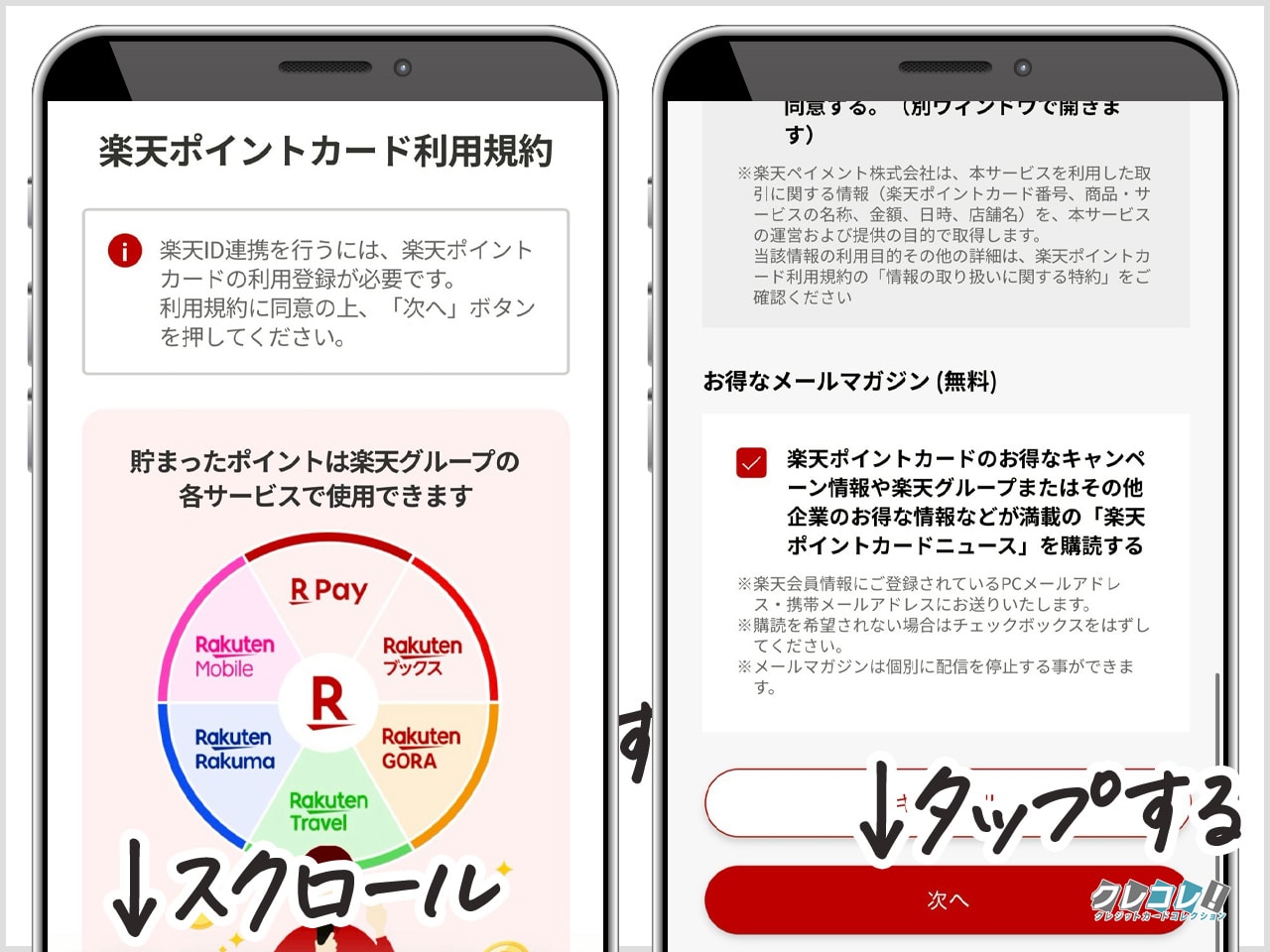 楽天ポイントカードの利用規約が表示されるので内容を確認して「次へ」をタップ。