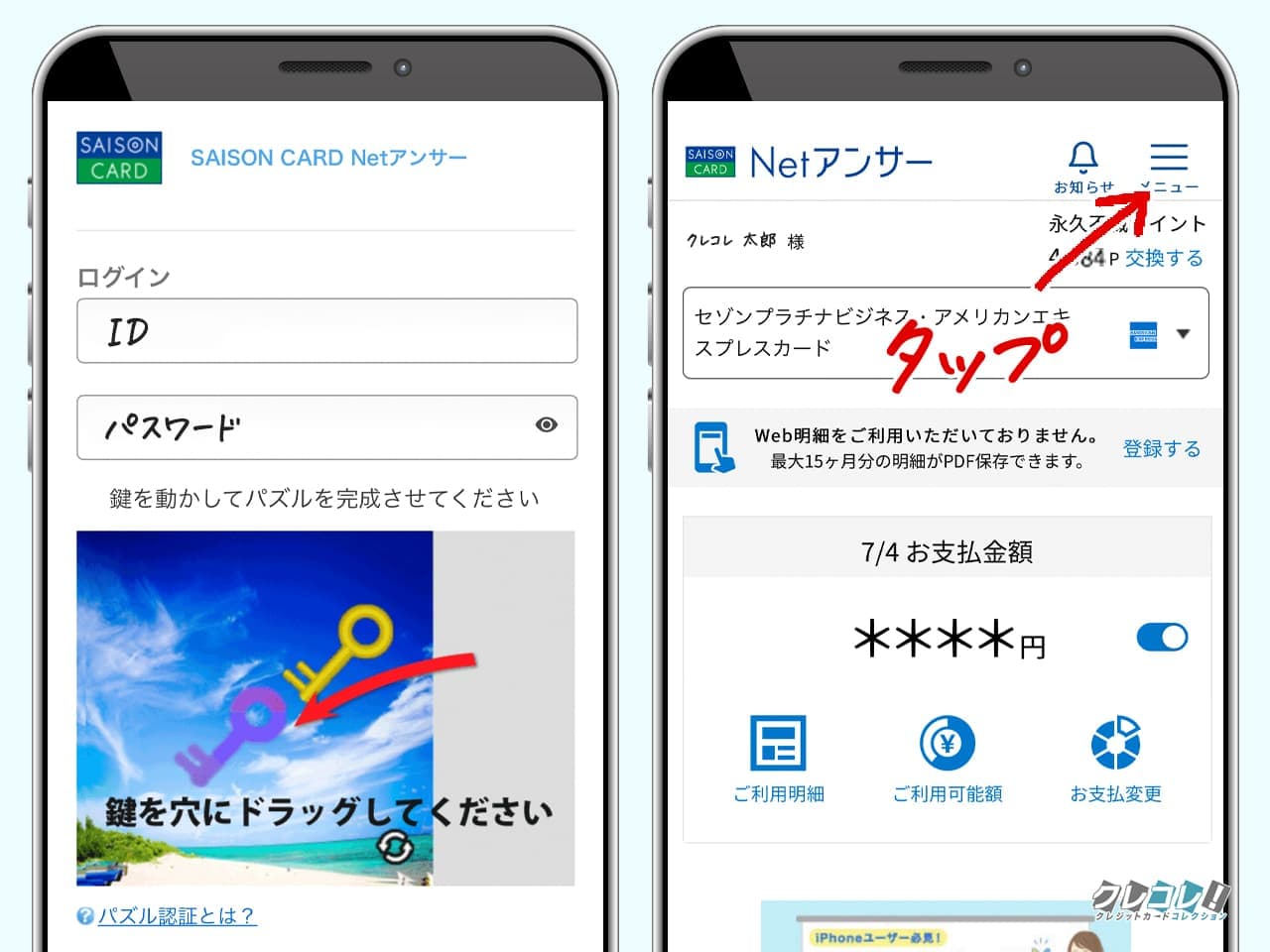 手順1:セゾンNetアンサーにログイン