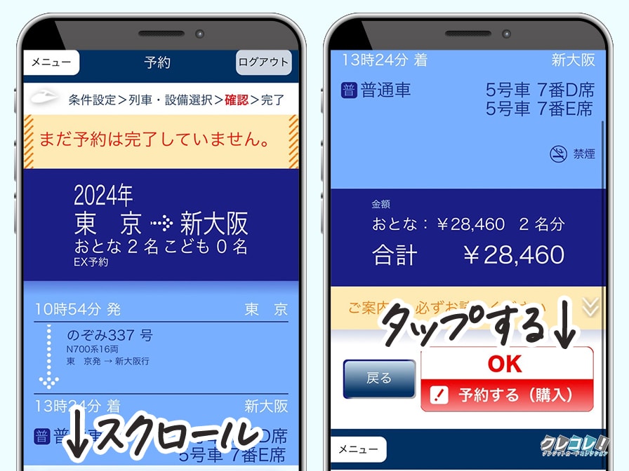 内容を確認して間違いがなければ「OK 予約する(購入)」をタップします。