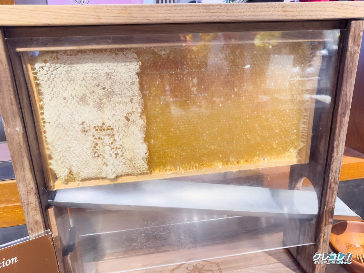 純粋巣蜜という、蜜蠟ごと食べられるはちみつも置いてありましたよー!