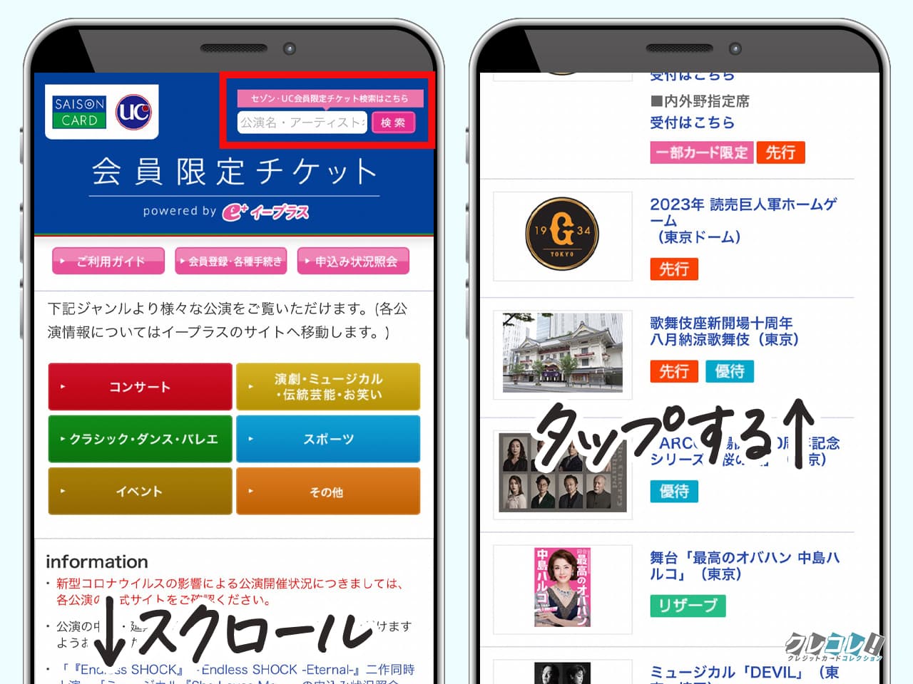 セゾンカード限定のイープラスからチケットを申し込む