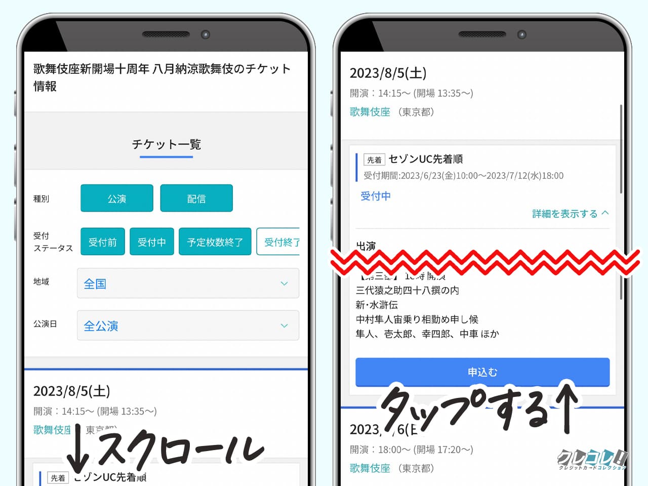 スクロールして申し込みたい公演をタップします。