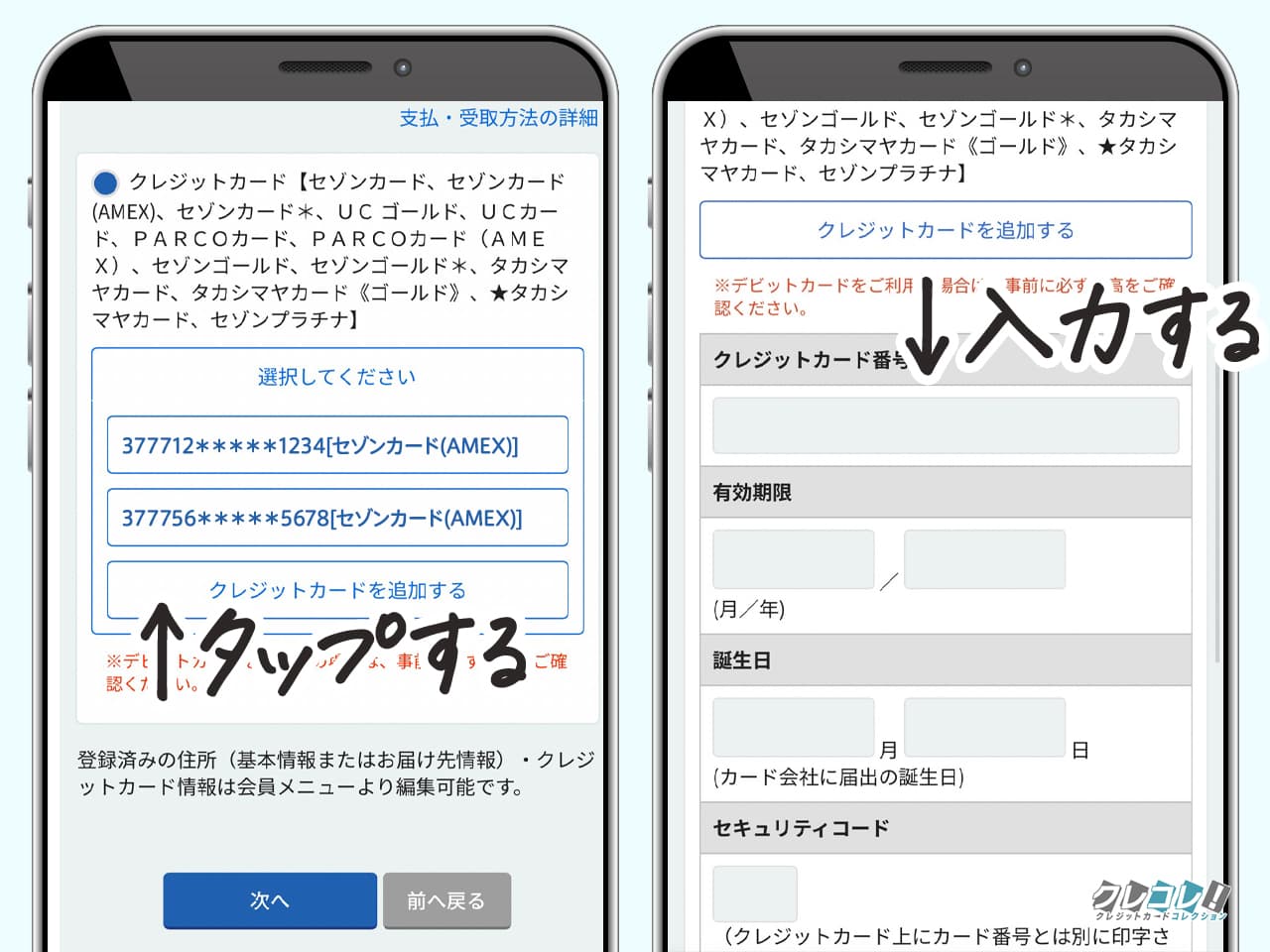 初めて使う人は「クレジットカードを追加する」をタップして、クレカ情報を入力してください。