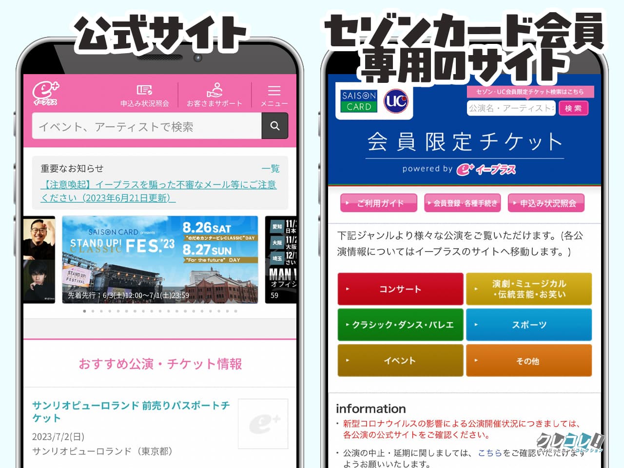 通常のイープラスのサイト・アプリから申し込むと、セゾン会員限定チケットは買えません。