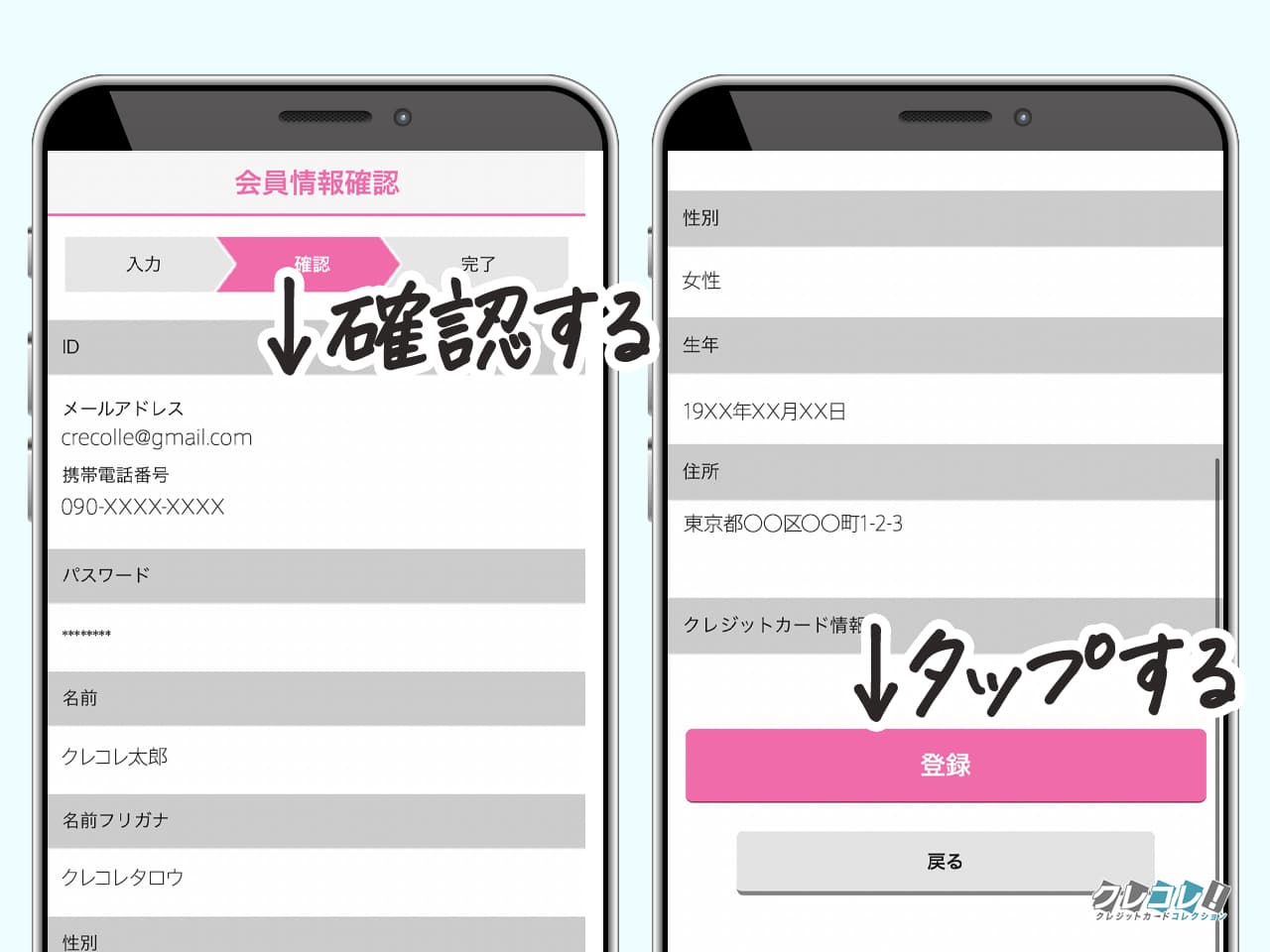 登録内容を確認して問題なければ「登録」をタップ。