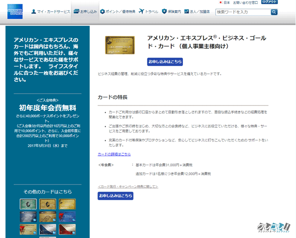 アメックスの中では安めの年会費の設定ですが、一般的なゴールドカードよりも高額なのが気になります。