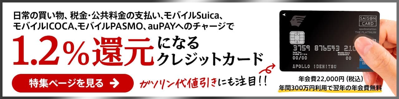| マイル交換に必要なオプション | 100円利用=1.125JALマイル セゾンマイルクラブの加入要(追加年会費5,500円/税込) ※年1,500万円利用で無料 |
