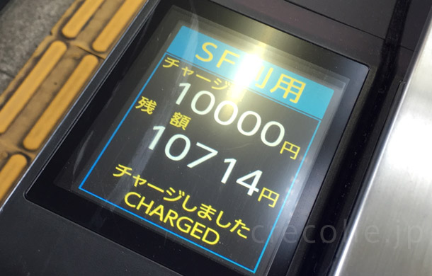こんな感じで改札にカードをかざした時に”チャージしました”、と表示が出ます↓