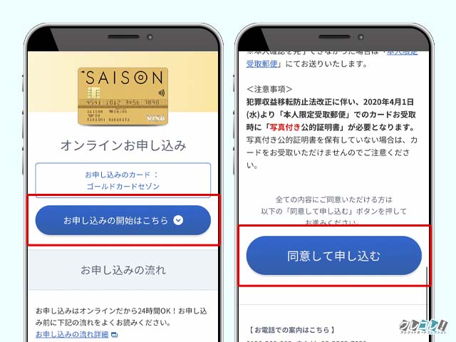 申し込みページを開いたら、まずは「このカードに申し込む」をタップ。