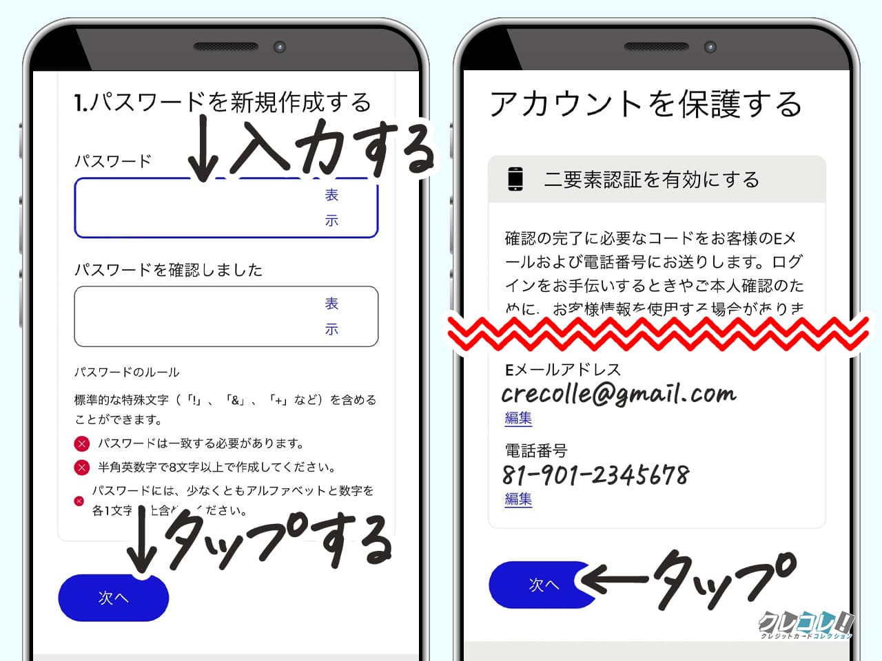 パスワードを決めて、「次へ」をタップします。