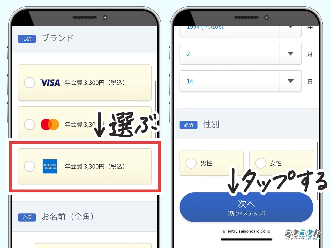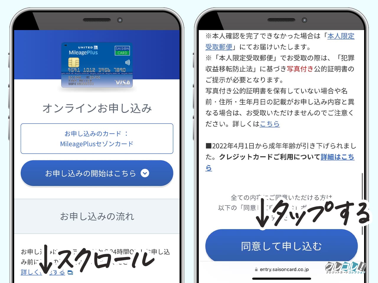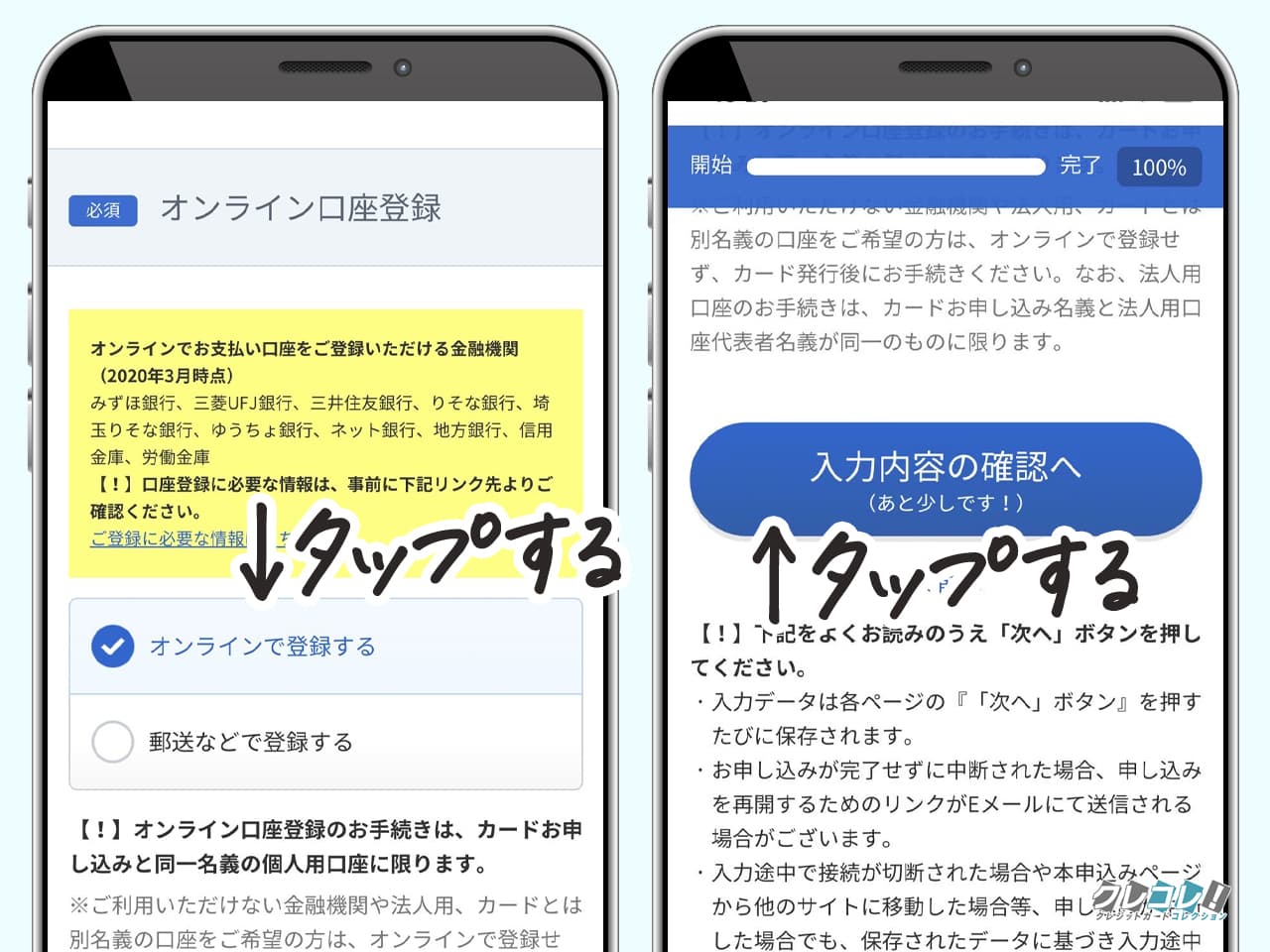 「お申込みはこちら」をタップしてから、「このカードに申し込む」をタップ。