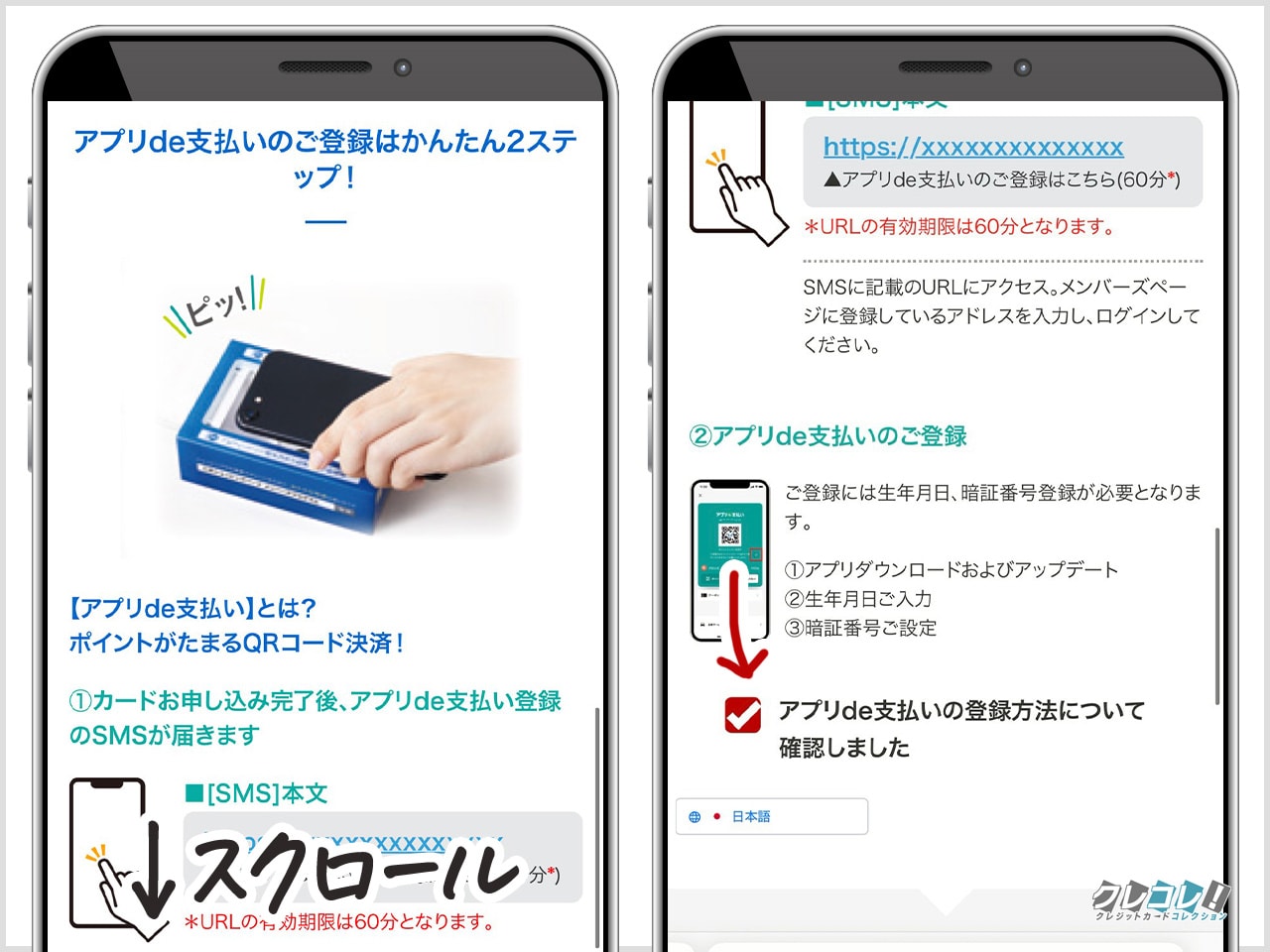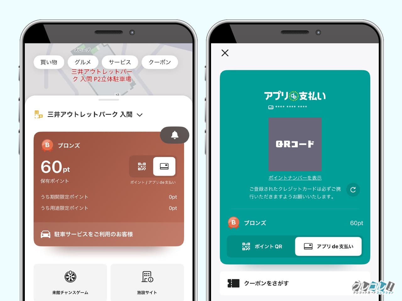 アプリde支払いという三井ショッピングパークアプリで使えるスマホ決済機能の登録方法が表示されます。