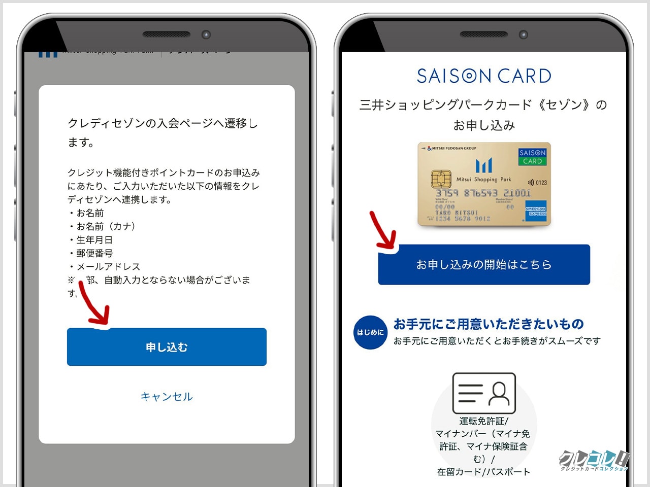 クレディセゾンのクレジットカード申し込みページに移動します。