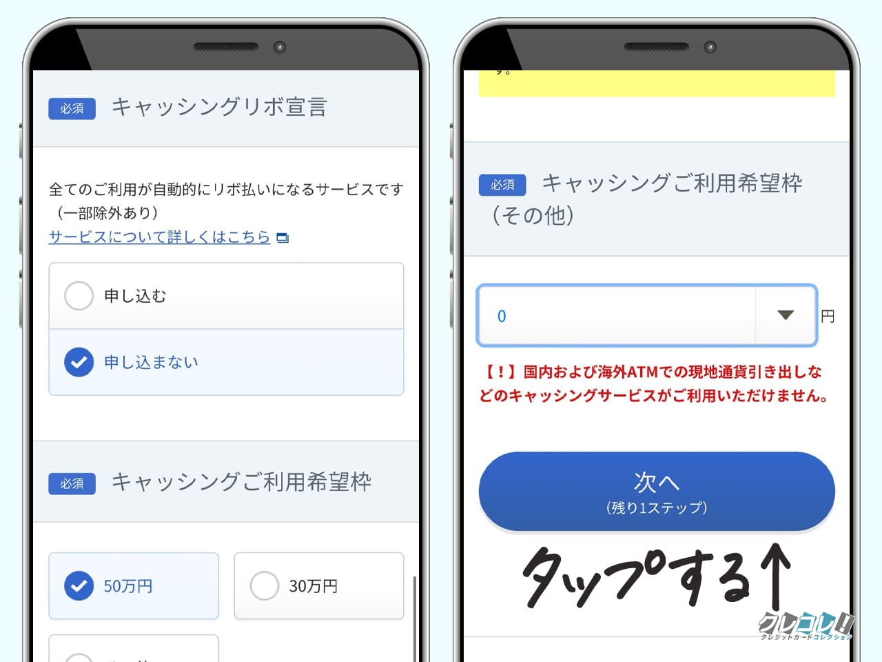 キャッシングリボ宣言も同じように必ず「申し込まない」を選択してください。