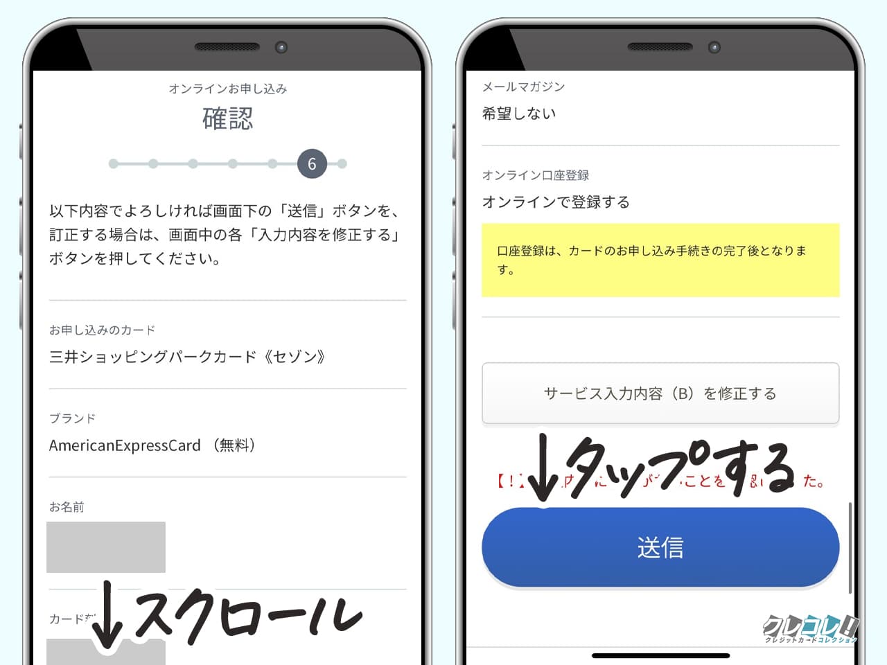 今まで入力した内容が表示されるので、間違いがなければ「送信」をタップ。