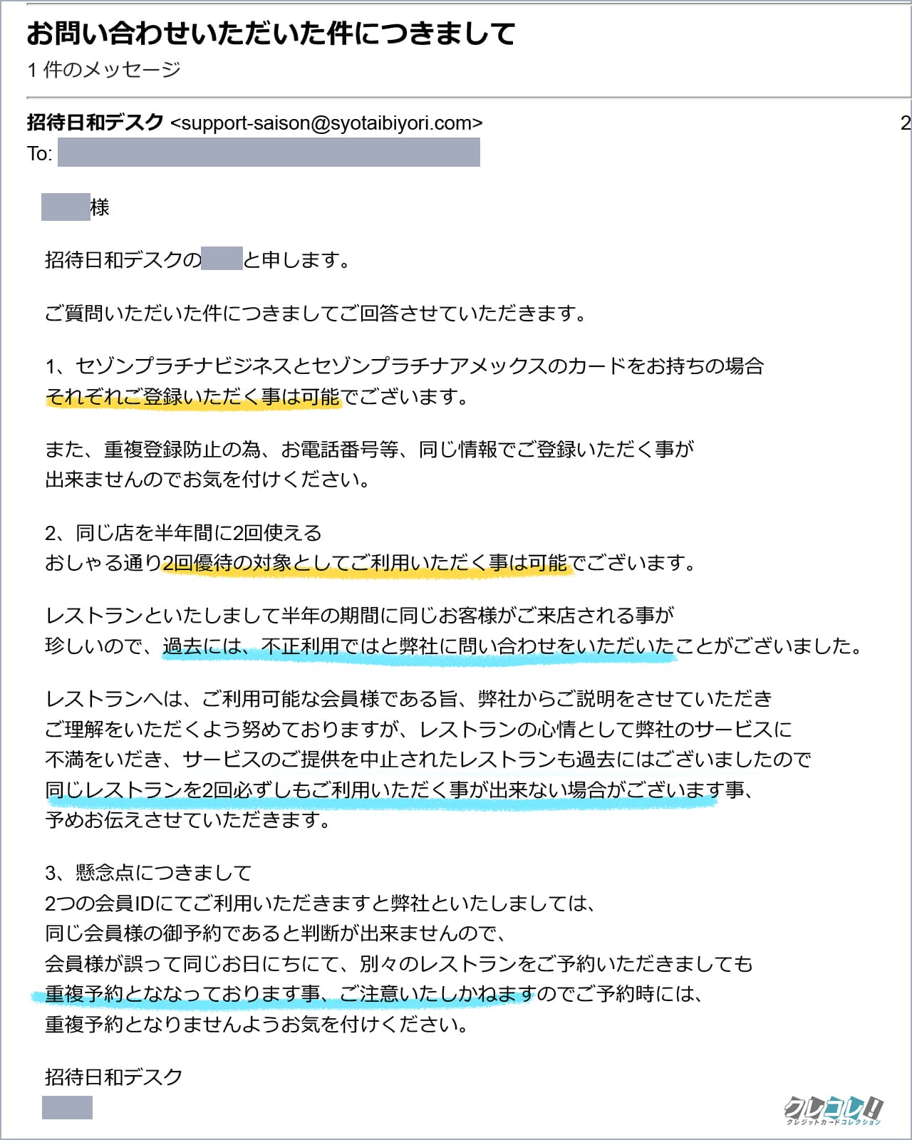 | 2024年10月? | 適用済 | プラチナカード2枚持ちで招待日和で同じ店を半年間に2回使えなくなった |