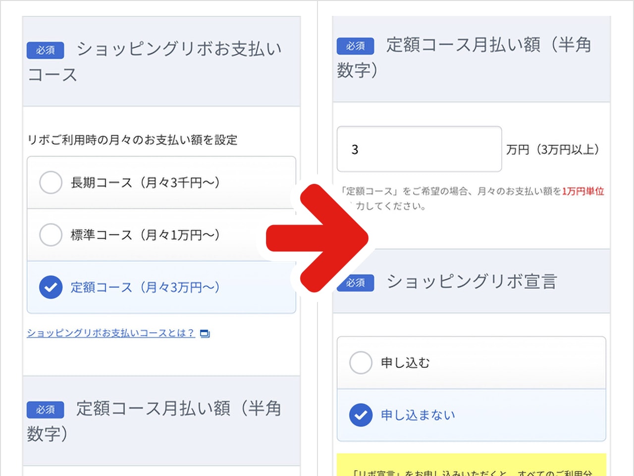 ⇒ショッピングリボ宣言と同じで申し込まないを選びましょう。