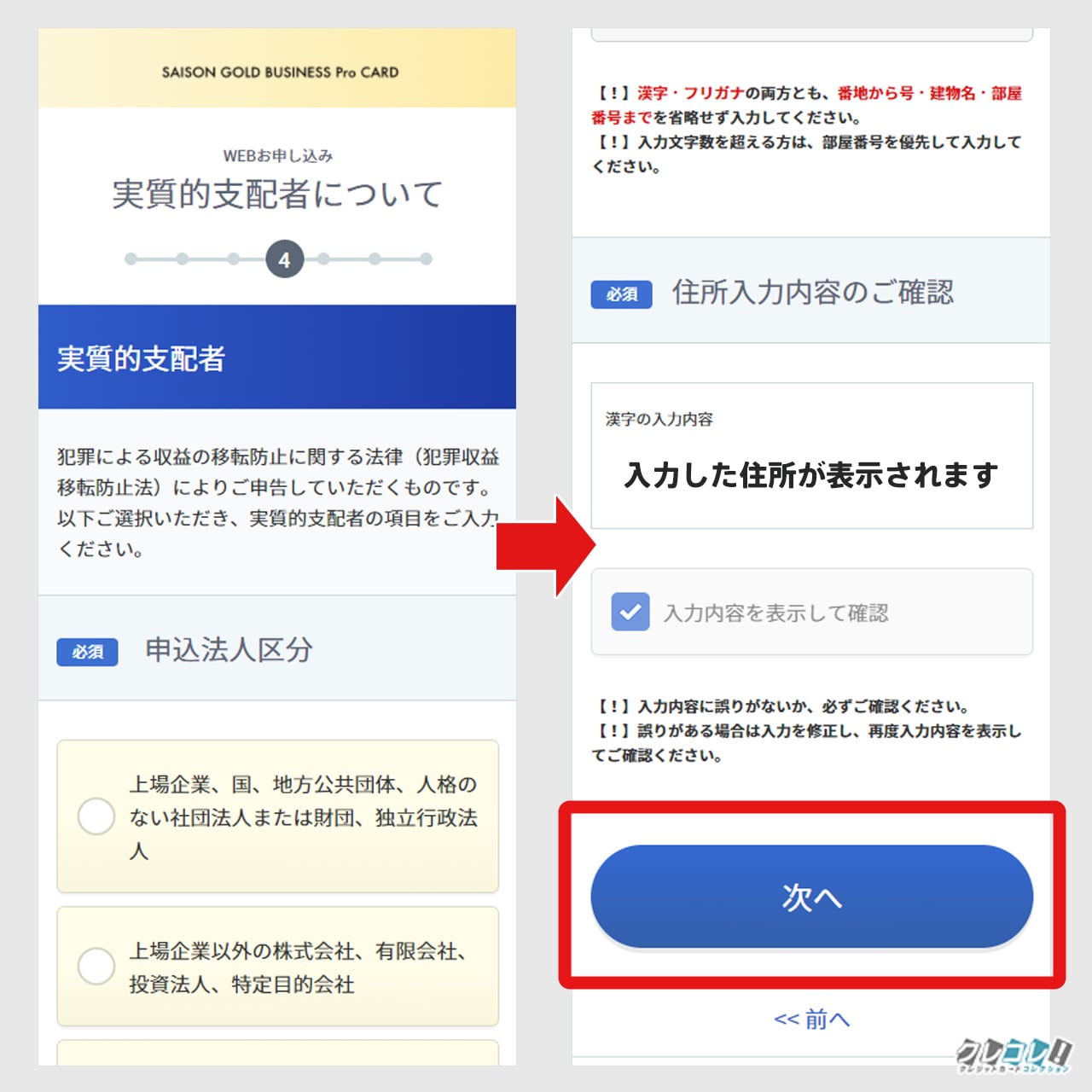 入力したら「次へ」に進み、続いて実質的支配者の情報を入力していきます。