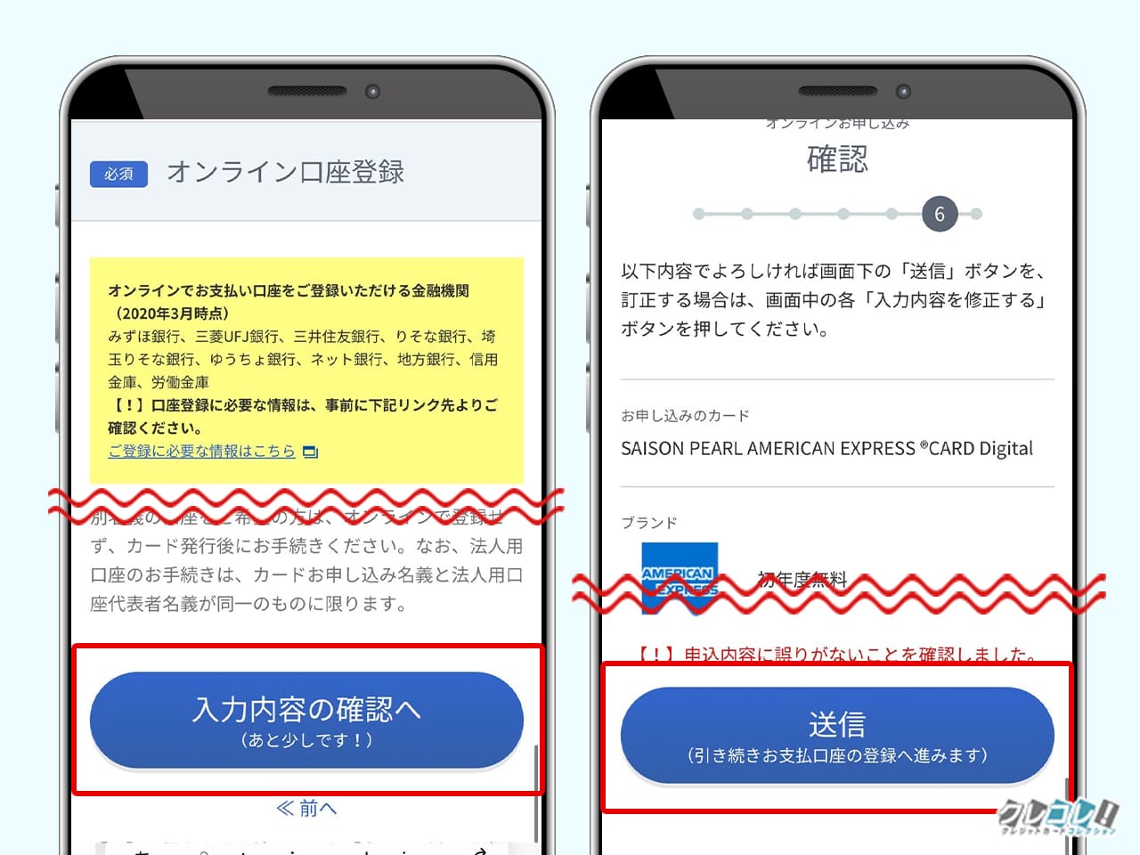 これでオンライン口座登録の登録は完了!後はカード会社規定の基準により審査が行われます。