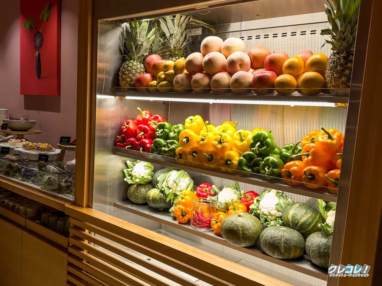 夕食もビュッフェスタイルなのですが、イタリア料理がたくさん並んでいて、生野菜が最高に美味しいんです。