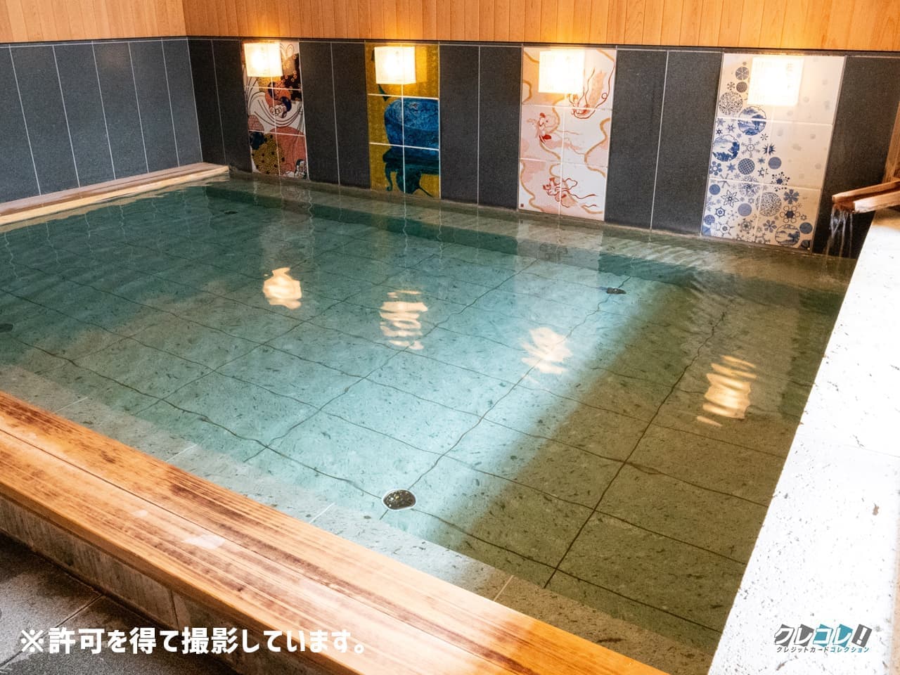 界 加賀では加賀の四季をイメージした九谷焼のアートパネルを見ながら入浴できます。