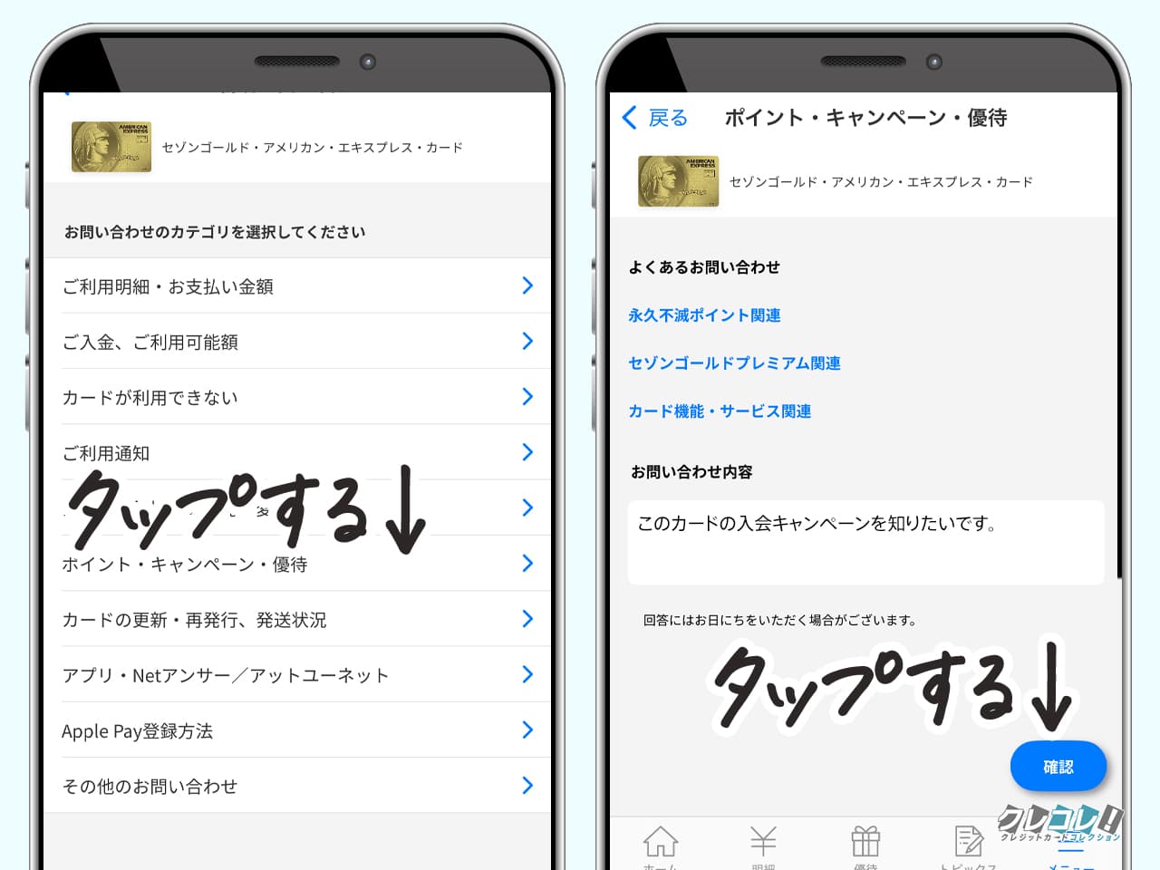 「このカードの入会キャンペーンを知りたいです。」 と、お問い合わせください。