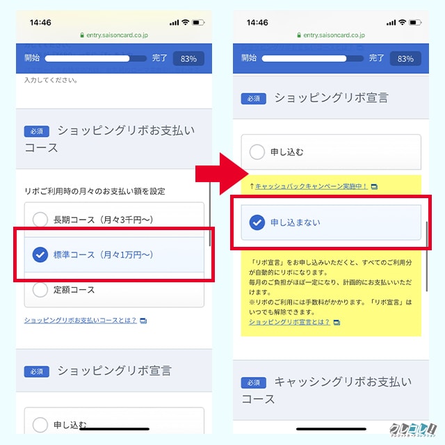 ⇒ショッピングリボ宣言と同じで申し込まないを選びましょう。