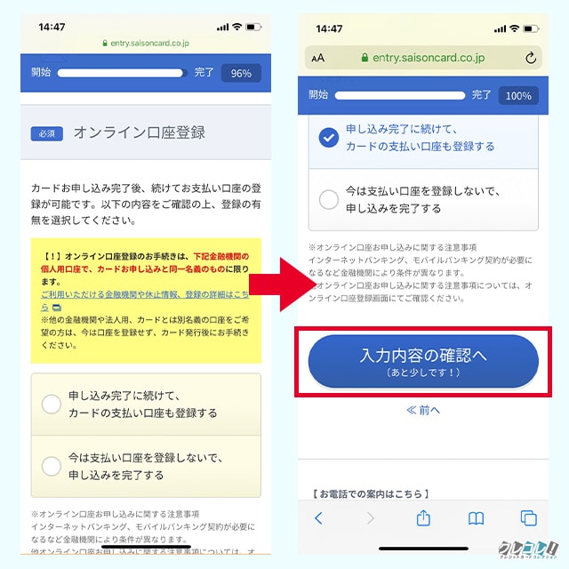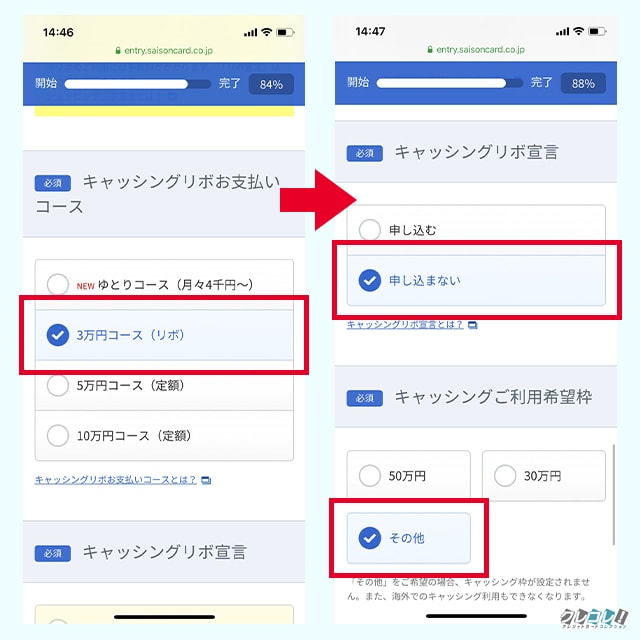 申し込みの流れと自動リボ設定にしない方法