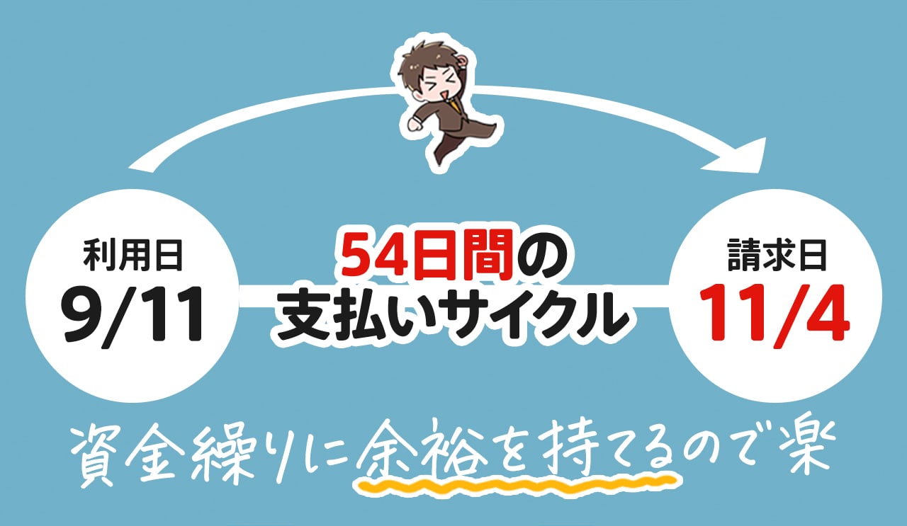 請求金額を最長で54日先延ばしにできるので手元にあると便利です。