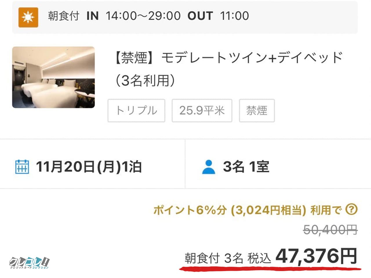 この条件で普通に予約すると50,400円(税込)かかりますが…