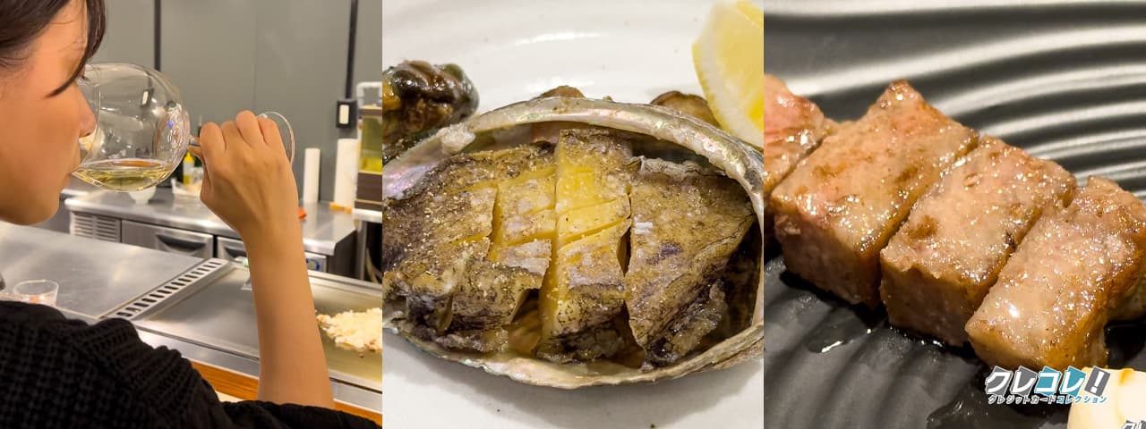 黒毛和牛やアワビなどが出てくるコースを3人で食べて、これだけ安くなりました!