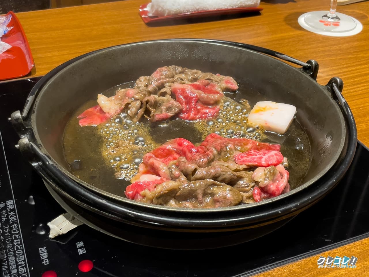 プロの店員さんが焼いてくれるので、私たちは待ってるだけで最高に美味しいすき焼きが食べられます。