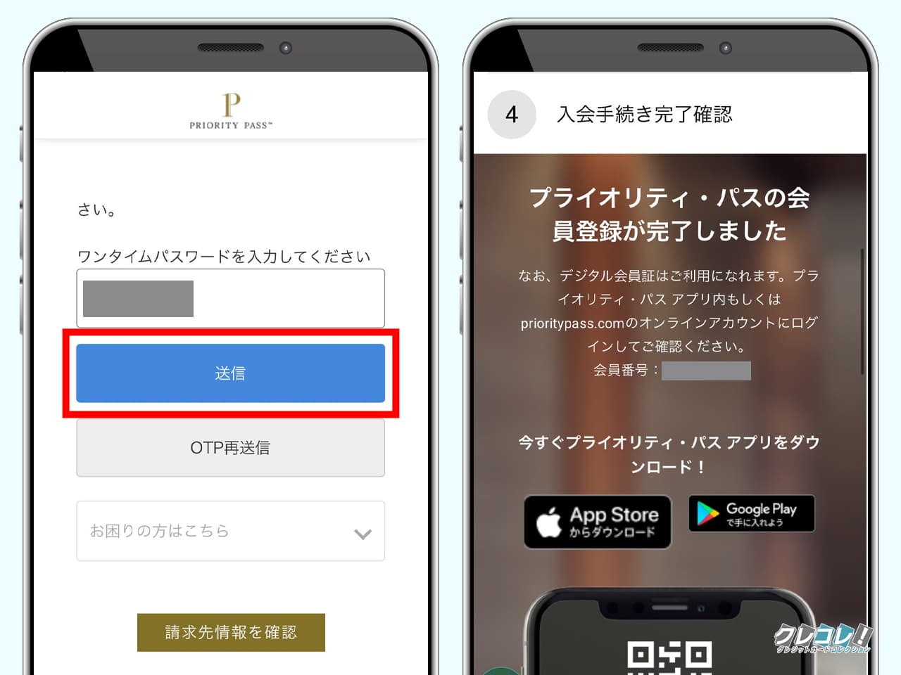 全ての入力が終わると、登録した電話番号かメールアドレスにワンタイムパスワードが届くので送信。