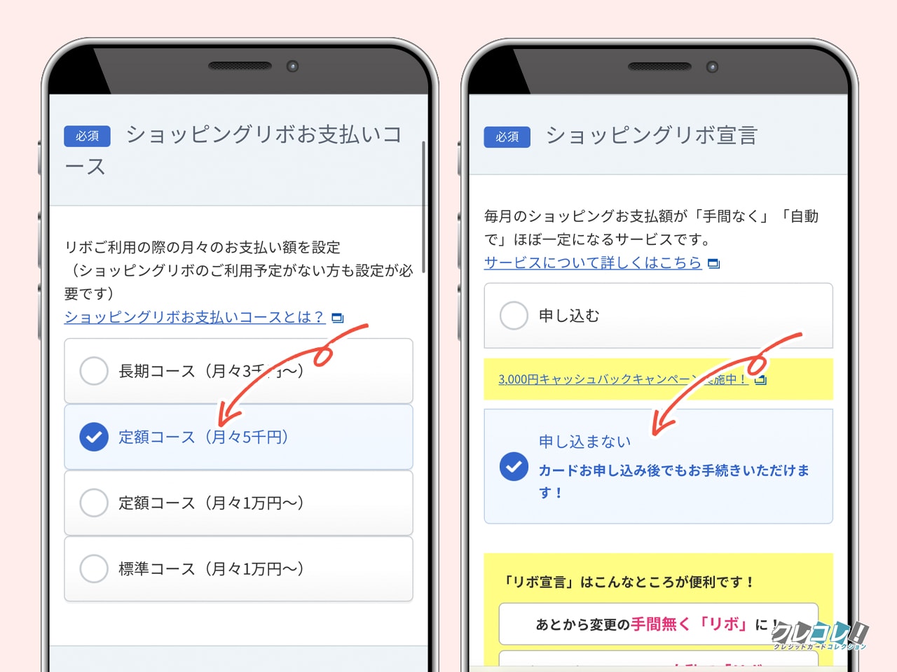 ショッピングで「リボ払い」を使った場合、ここで選んだ支払いコースが適用されます。