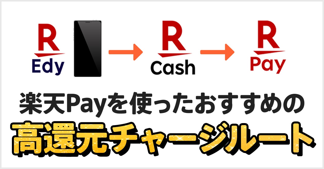 楽天ペイのチャージルートでは、楽天Edyから楽天キャッシュにチャージし楽天ペイで払うというルートを使用します。