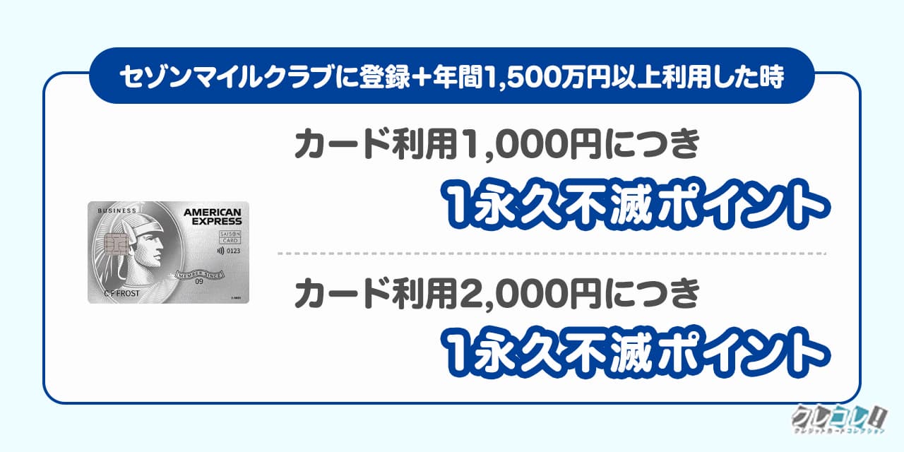 | (セゾンマイルクラブの永久不滅ポイント加算)2,000円利用につき1永久不滅ポイントが貯まる | 0.25%還元 |