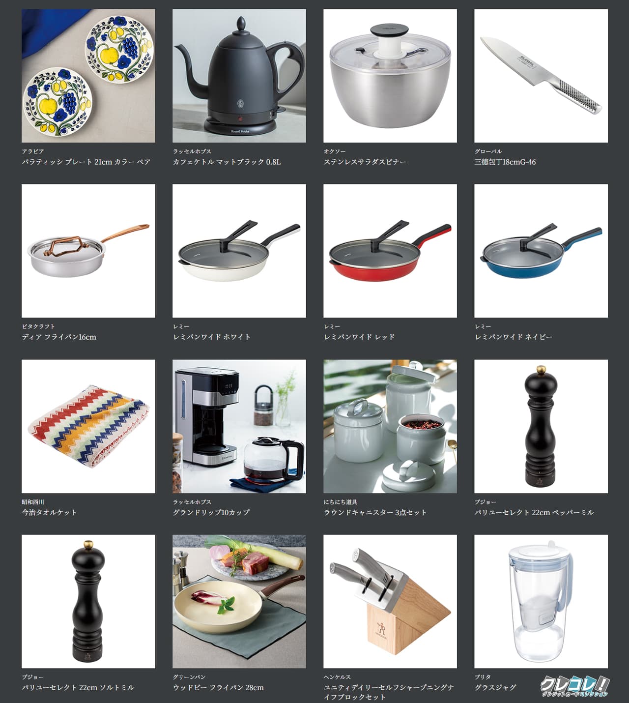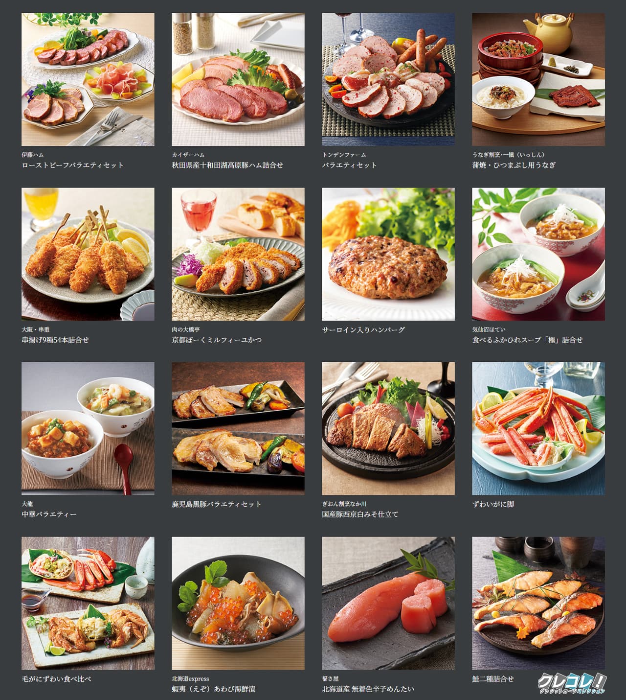 肉、魚、デザート、キッチン家電、旅行チケットなどが選べます。