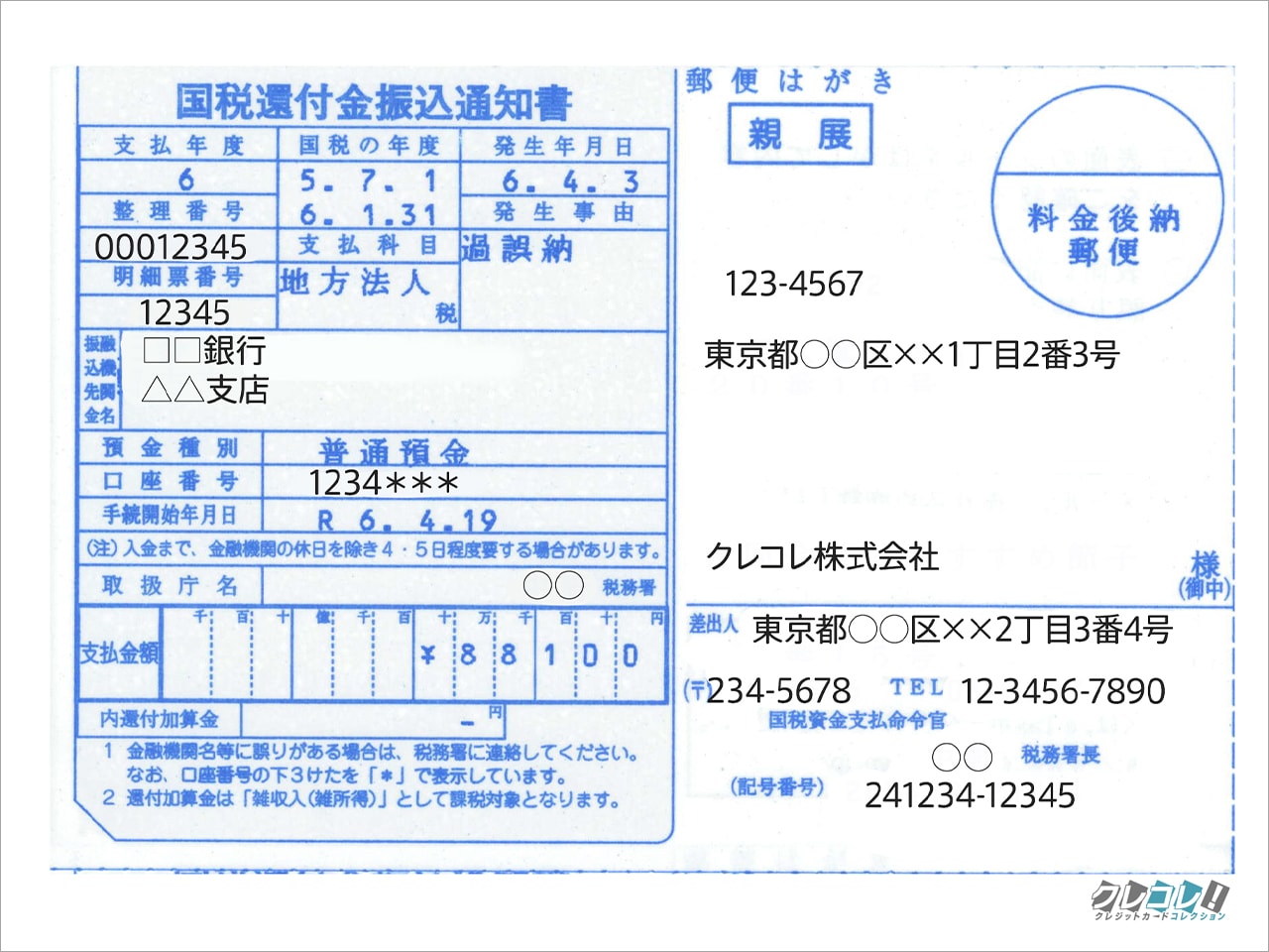 こういったハガキが届いて還付されてました↓