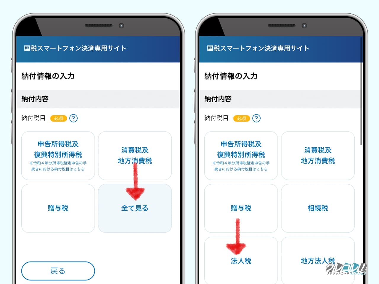 「全て見る」をタップして法人税を選択します。