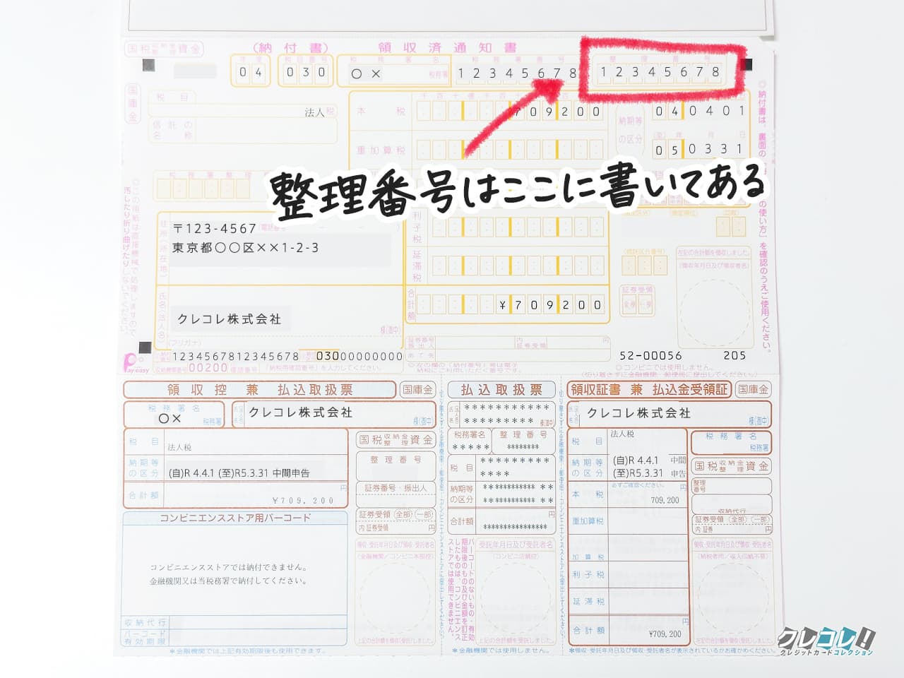 整理番号は納付書のこのあたりに書いてありますよ!