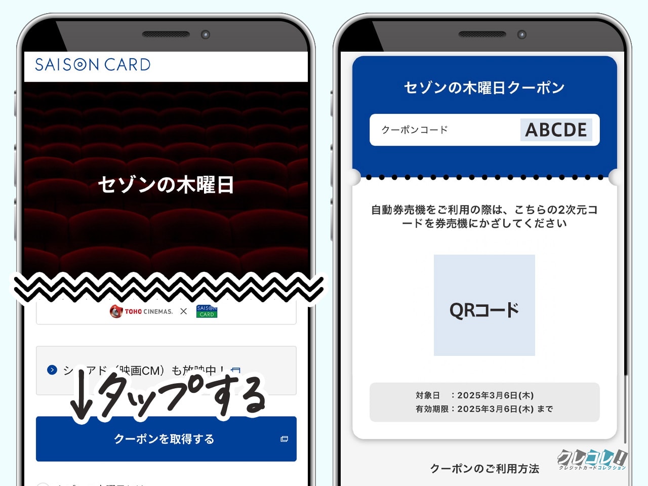 どちらの方法でもまずは「セゾンの木曜日」のクーポンコードを取得する必要があります。