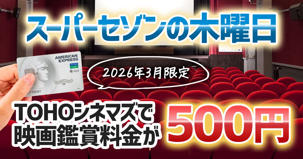 映画鑑賞料金が500円になる「スーパーセゾンの木曜日」も定期的に開催する可能性があるので、これを機にセゾンカードを作っておくのがおすすめです。